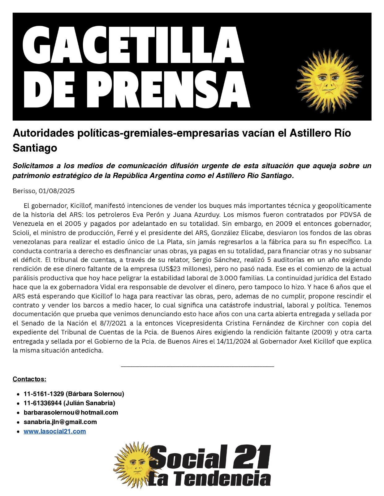 Con CFK guardada, los sindicatos alineados, los movimientos sociales también, Massa operando como relevo, en su nombre, y Kicillof -los chinos- difuminados (por ahora), parece que la colonia está en orden. Difícil de creer el circo (...)